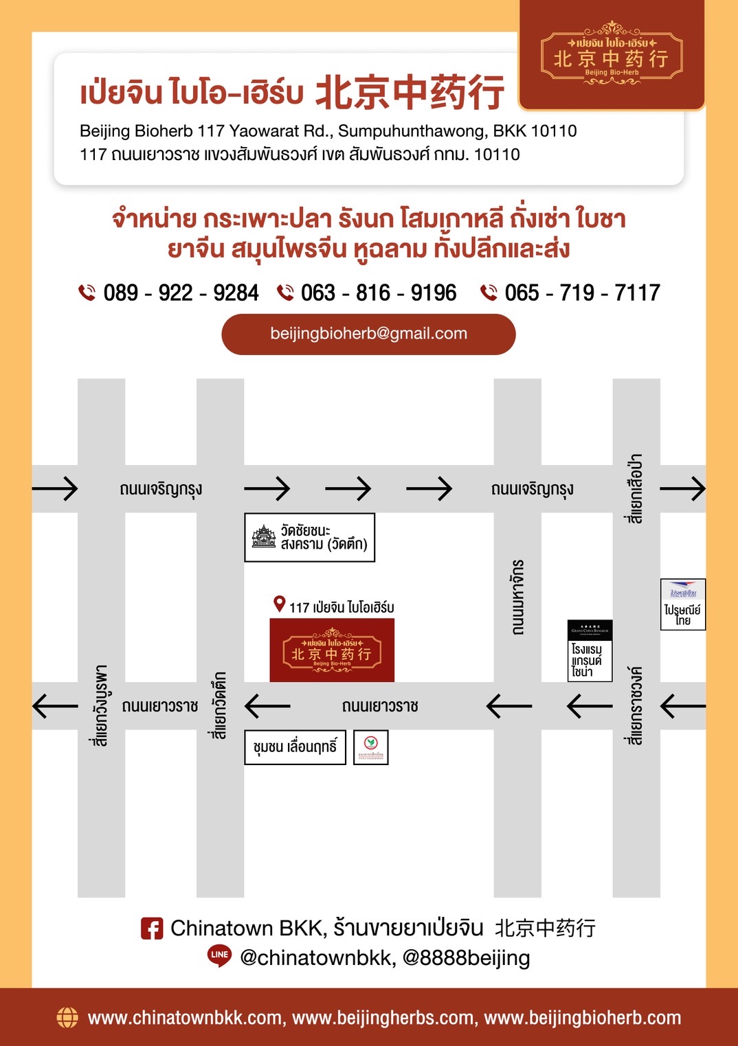 ร้านยาเป่ยจิน ขายยาจีน สมุนไพรจีน โสมเกาหลี กระเพาะปลา รังนก และสุราจีน ร้านขายยาจีน สมุนไพรจีน-ไทย โสม รังนก กระเพาะปลา หูฉลาม และสุราจีน ทั้งปลีกและส่ง รับบดยาจัดเทียบยาตามแพทย์สั่งด้วยประสบการณ์ที่ยาวนาน เน้นรักษาคุณภาพของสินค้าและบริการมาอย่างต่อเนื่อง ถ้าหากท่านหาสินค้าไม่พบบน website สามารถทักสอบถามได้ทางไลน์ Line@ : @8888beijing หรือ Tel : 063-816-9196